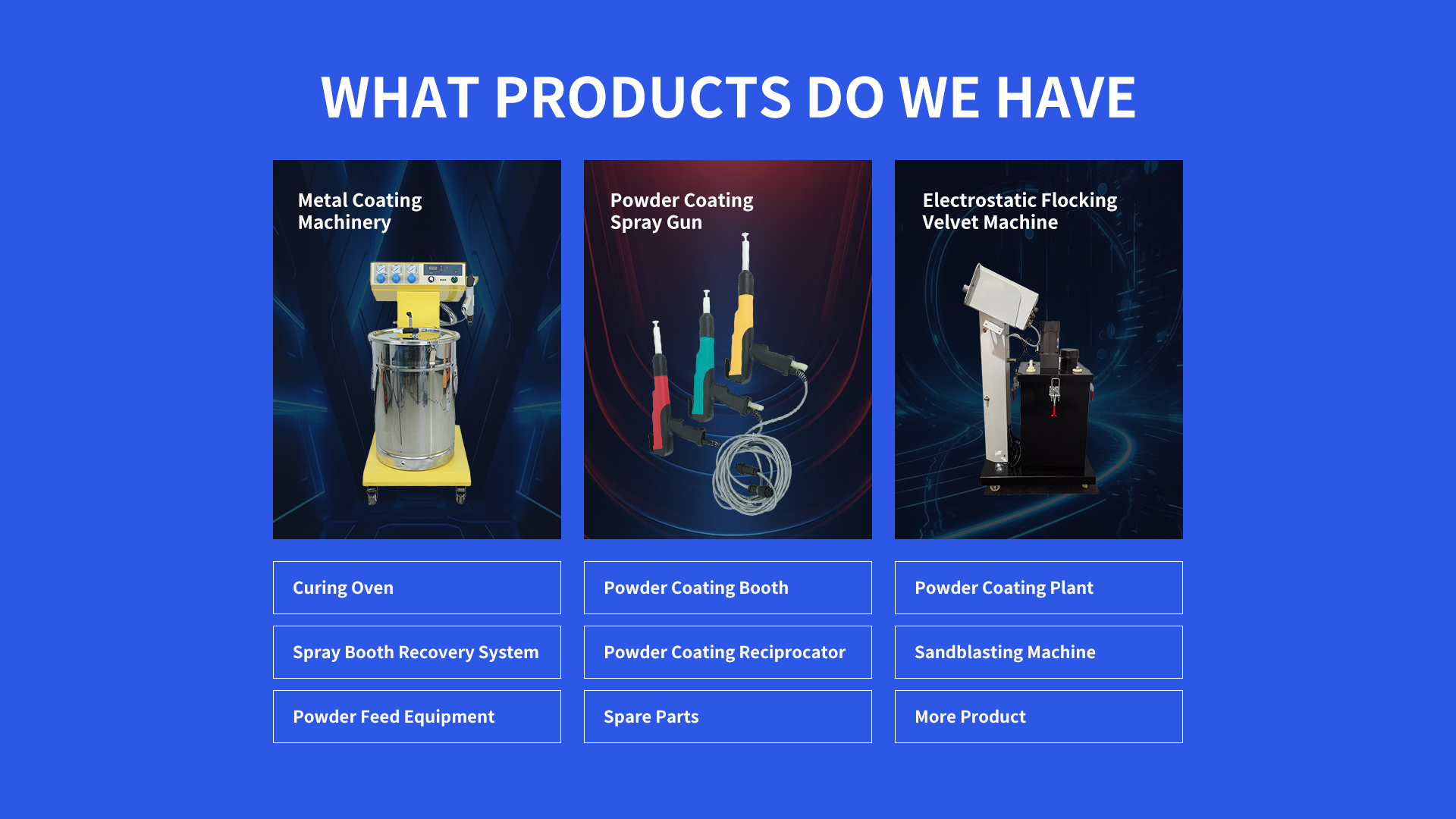 The Powder Coating System stands as a testament to versatility, catering to industries ranging from furniture manufacturing to aerospace engineering. Its ability to produce durable, scratch-resistant coatings makes it ideal for a diverse array of applications